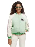 Легкая разноцветная куртка-бомбер с нашивкой в виде пчелы и вышивкой на спине добавит яркости вашему образу. Контрастная подкладка, золотистая молния и декоративная отделка рукавов - приятные детали, придающие изысканности.