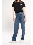 Широкие джинсы кроя Wide Leg со средней посадкой, актуальная с этом сезоне модель для модных и классических образов в спортивном или кэжуал стиле. Модель c пятью карманами и легким расширением от бедра по всей длине