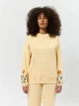 Свитшот имеет свободный крой и круглый вырез, что позволяет носить его с комфортом в любой ситуации. Вышивка на рукавах добавляет уникальности и шарма образу, делая эту толстовку неповторимой.